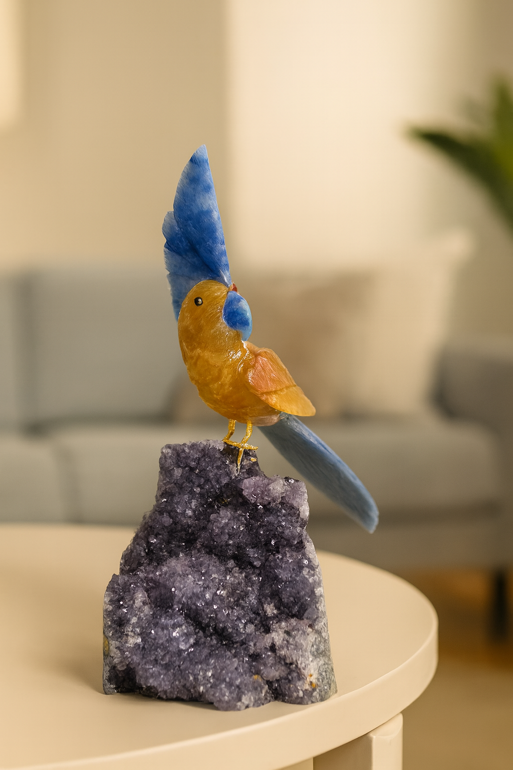 Every detail is meticulously carved and polished to bring out the natural beauty of the stones, making this bird not just a décor item but a meaningful gemstone creation.