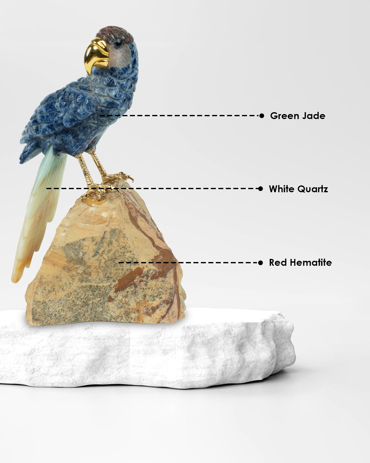 Discover the perfect harmony of mind, purity, and strength with the Love Spirit— a captivating gemstone sculpture that blends calming and grounding energies in one elegant creation. This bird features a Blue Sodalite body, a graceful White Quartz tail, and is firmly grounded on a powerful Red Hematite base, making it a unique symbol of stability, clarity, and emotional strength.