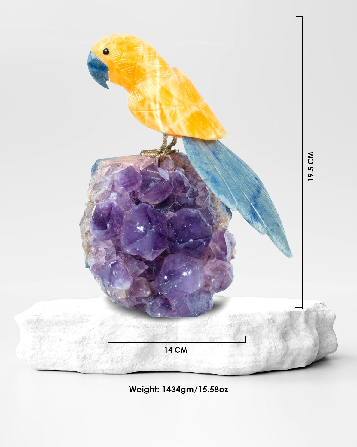 The Skyglow Bird is a luminous fusion of sunshine and starlight — a gemstone sculpture that captures the essence of optimism guided by wisdom. With a vibrant Yellow Calcite body and a deep celestial Lapis Lazuli tail, this bird is designed to inspire clarity, courage, and spiritual elevation.