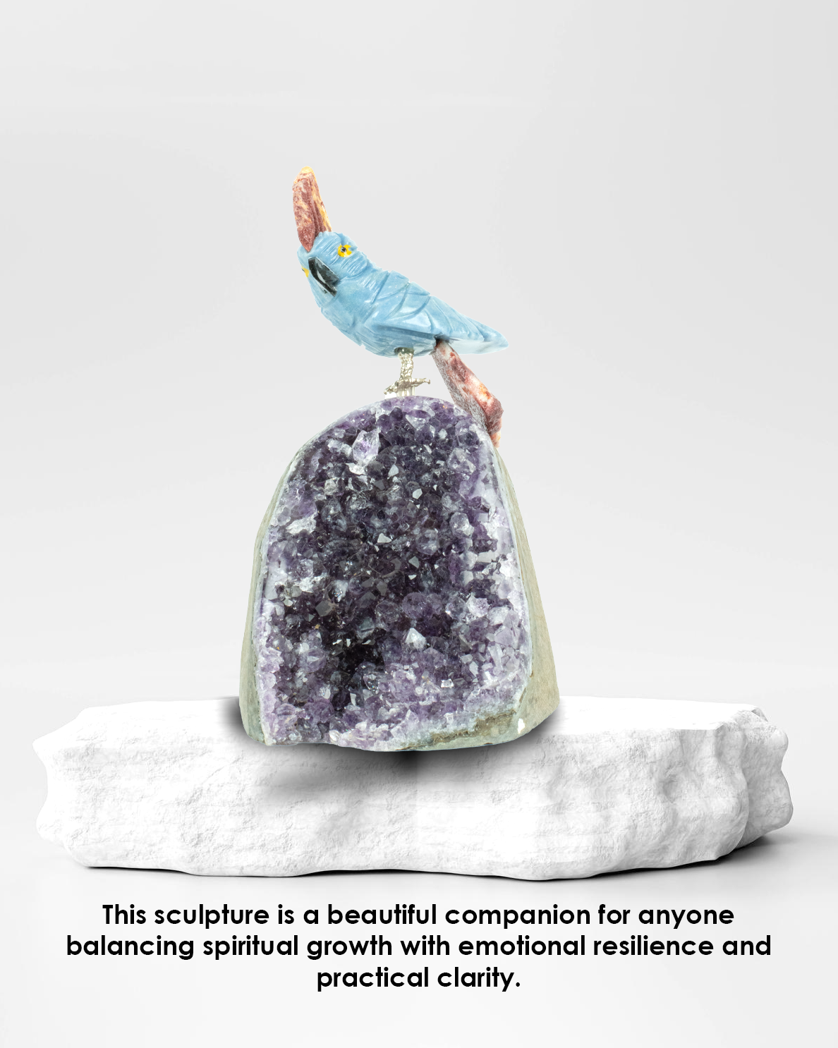 The Wisdom Rooted Bird is a refined symbol of spiritual awareness anchored in grounded strength. Hand-carved from two harmonizing stones — the deep celestial blue of Lapis Lazuli and the warm earthy tones of Brown Quartz — this gemstone sculpture gracefully bridges the space between higher consciousness and grounded presence. It is a powerful representation of balanced wisdom, crafted for those who seek insight with inner stability.