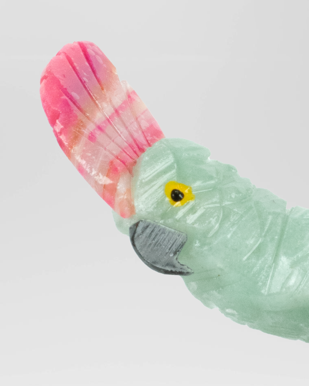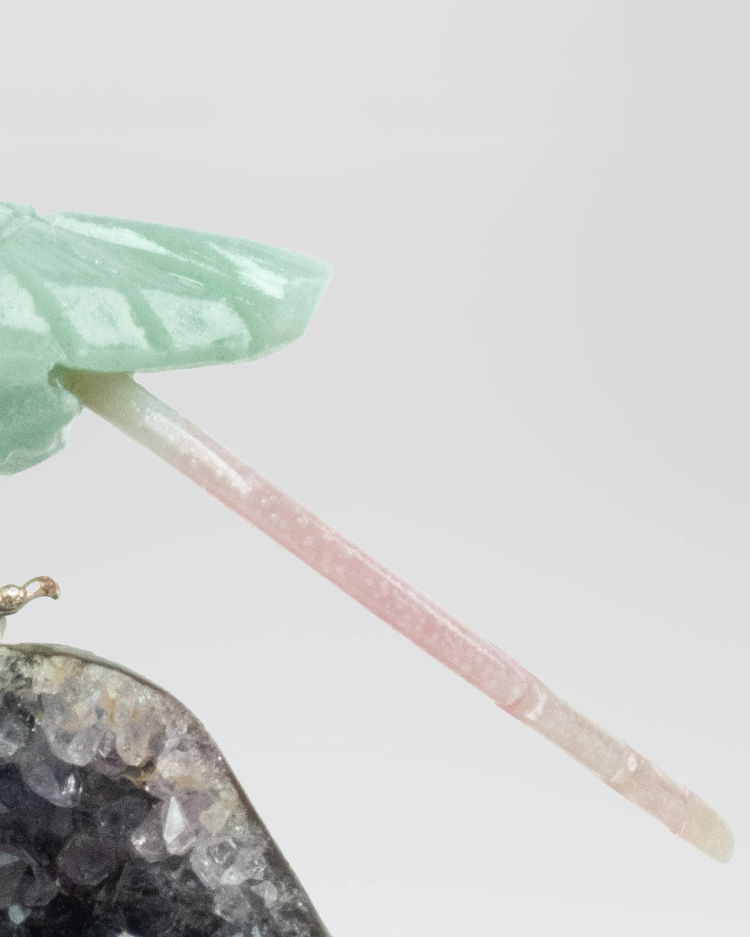 Both the crown and tail are delicately carved from Rose Quartz, the universal Stone of Love. Its pale pink hue and gentle vibration open the heart to self-love, compassion, and deeper connections with others.
