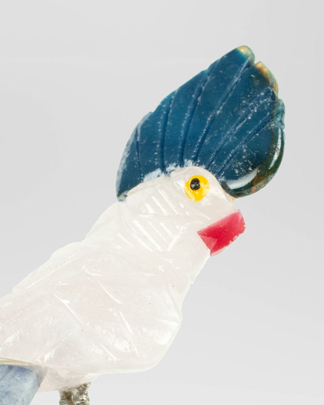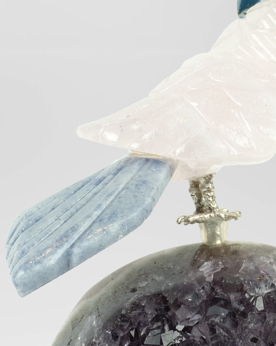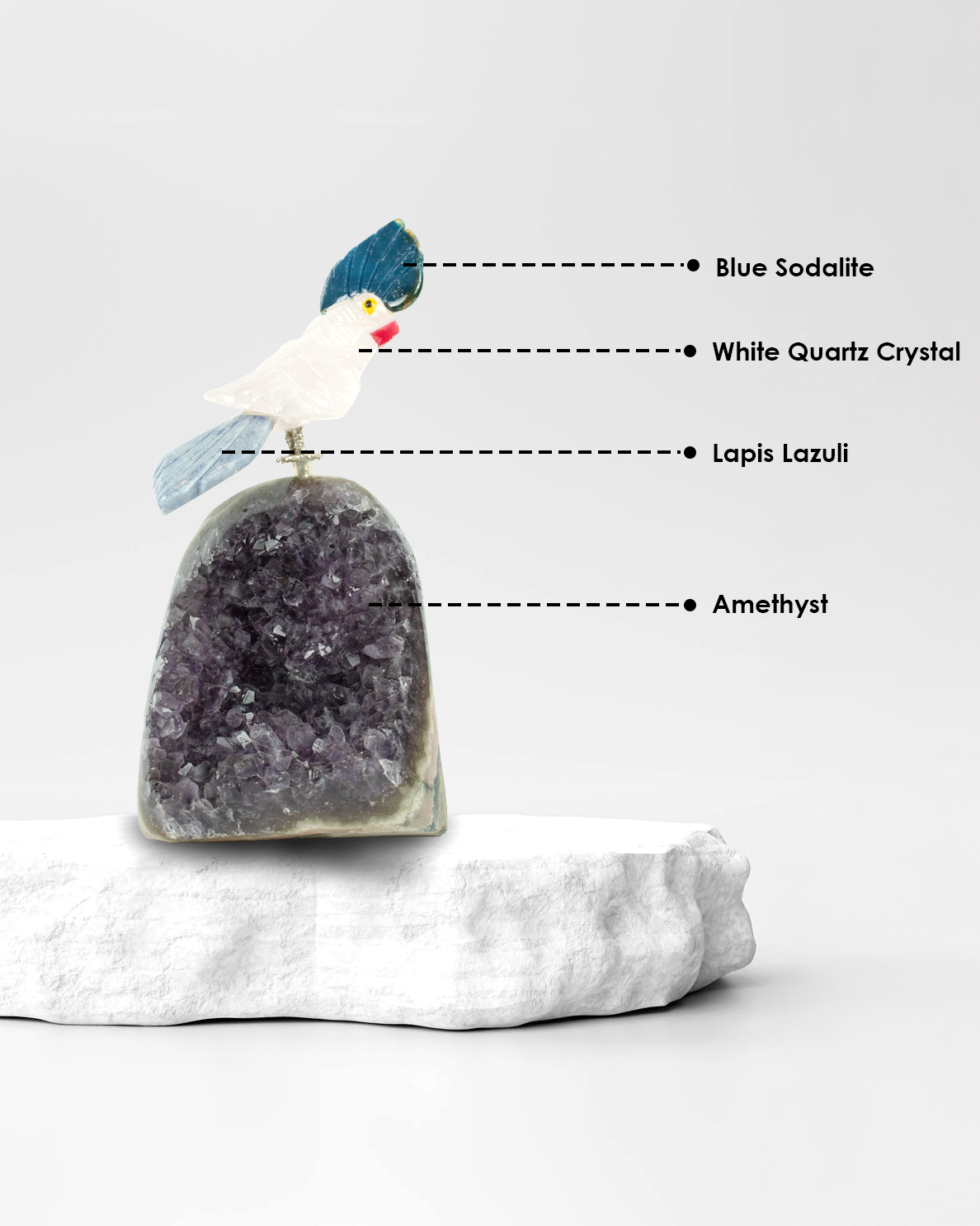 Topping the bird is Blue Sodalite, a deep oceanic blue stone known for its calming energy and mind-balancing properties. Often called the Stone of Logic, it encourages rational thinking, truth-telling, and emotional intelligence. The crown of Sodalite symbolizes a thoughtful, wise nature — a guide through emotional and mental clarity.