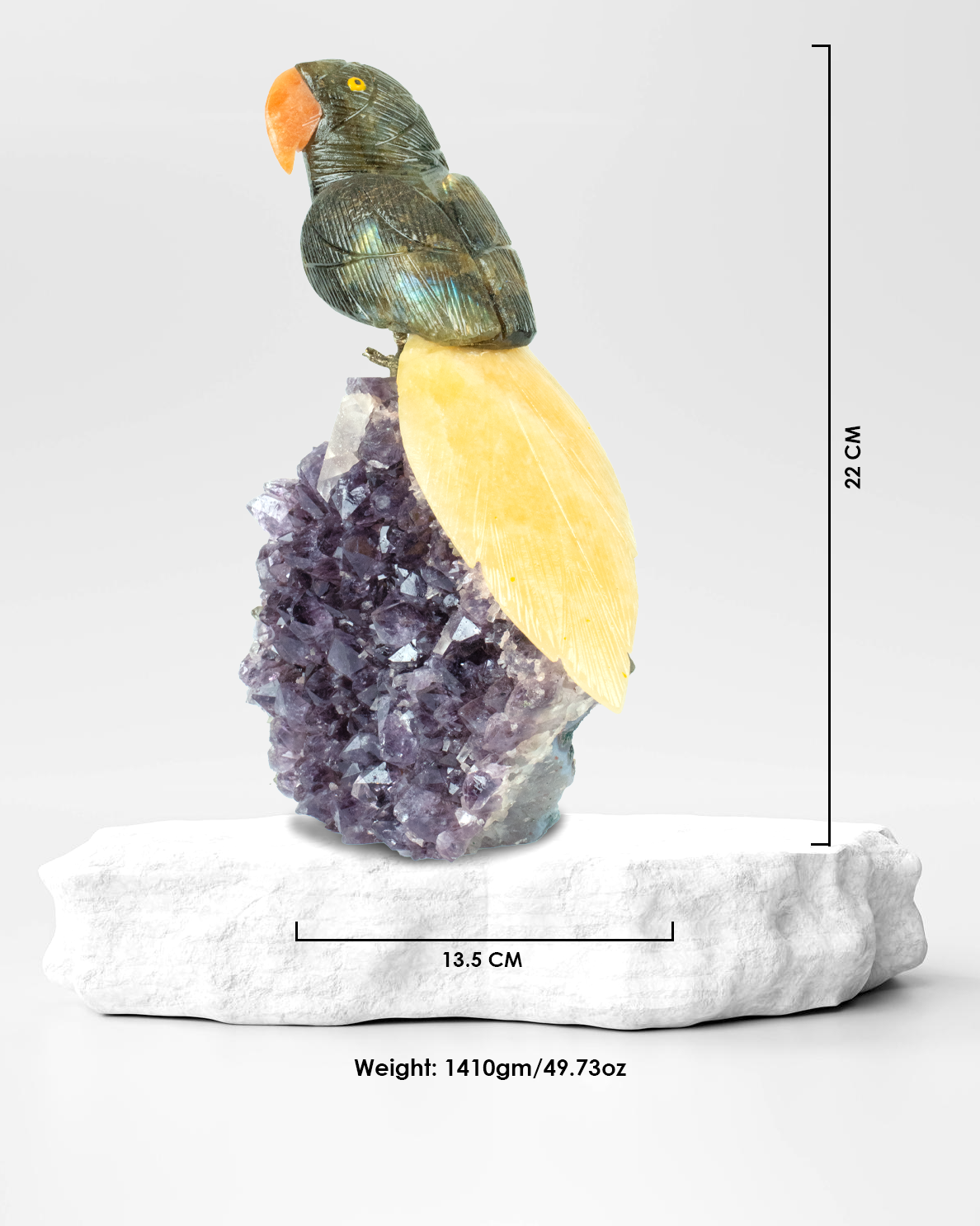 At the heart of this bird lies Black Tourmaline, one of the most potent protective stones in the crystal world. It aligns with the root chakra, offering powerful energy shielding, emotional balance, and a strong sense of stability. Whether you're navigating challenges or seeking peace, this stone creates a safe energetic space to stand strong.