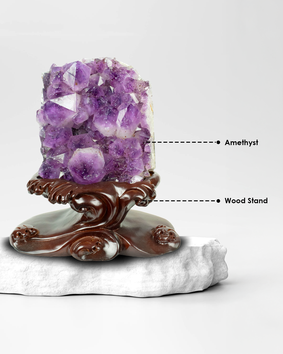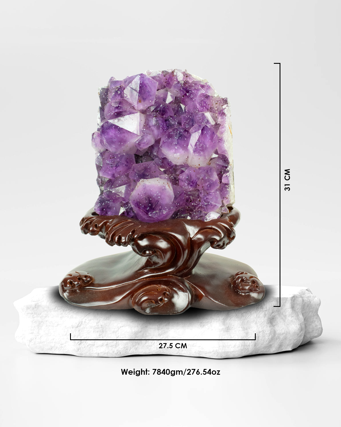 This piece is more than just décor — amethyst is known for its protective and healing energy, promoting peace, clarity, and emotional balance. Paired with a luxurious wave-carved base, this creation symbolizes strength rising from serenity.