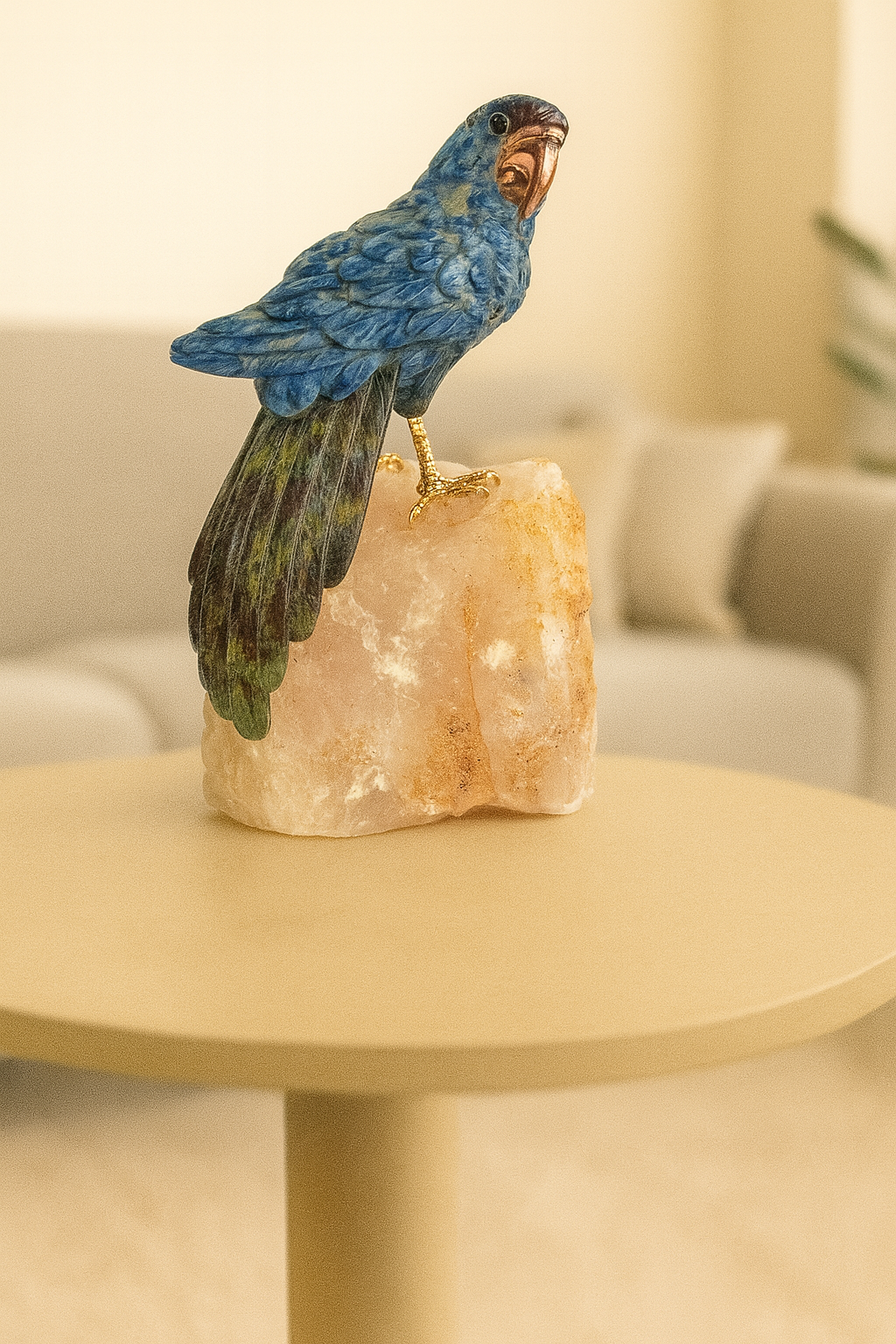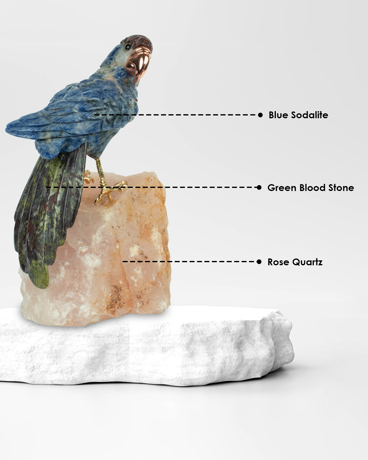 The stone of unconditional love, Rose Quartz promotes emotional healing, self-love, and harmony in relationships. It sets a peaceful, nurturing foundation for the bird's energy.