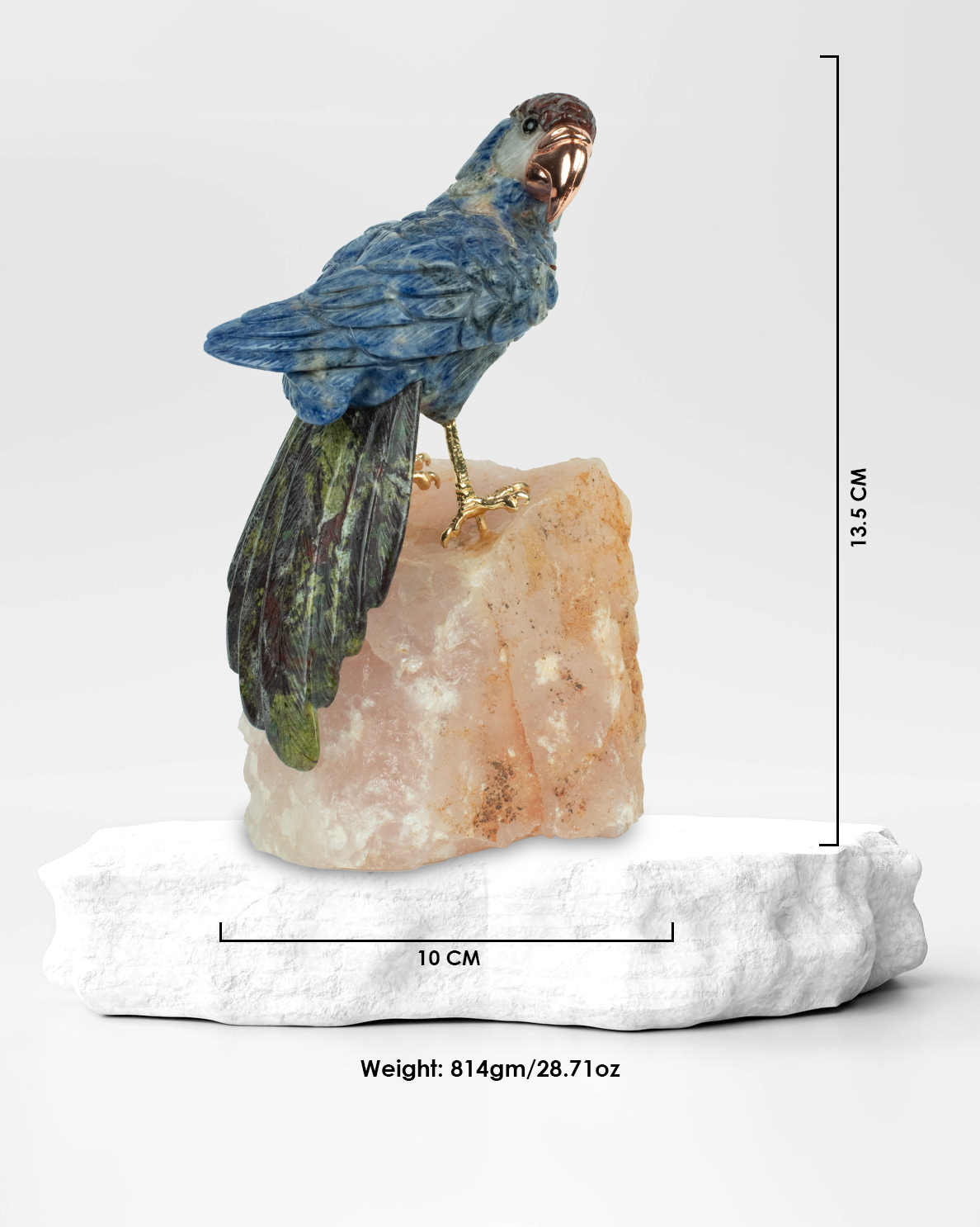 Invite harmony, healing, and grounded strength into your space with the Wise Bloom – Love Bird, a beautifully handcrafted gemstone sculpture that blends the calming energy of thought, the vitality of the body, and the compassion of the heart. Featuring a Blue Sodalite body, a Green Bloodstone tail, and a soft Rose Quartz base, this bird radiates balance and emotional renewal.